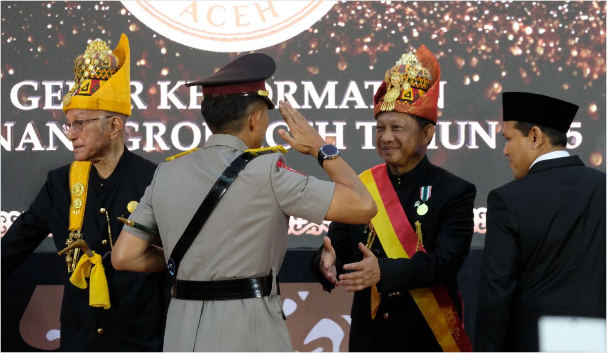 Gelar tersebut diberikan melalui Lembaga Wali Nanggroe yang berlandaskan Undang-Undang Nomor 11 Tahun 2006 tentang Pemerintahan Aceh. Usai acara, Kapolda menyampaikan apresiasi atas pelaksanaan prosesi adat yang berlangsung tertib dan penuh penghormatan terhadap nilai budaya.
