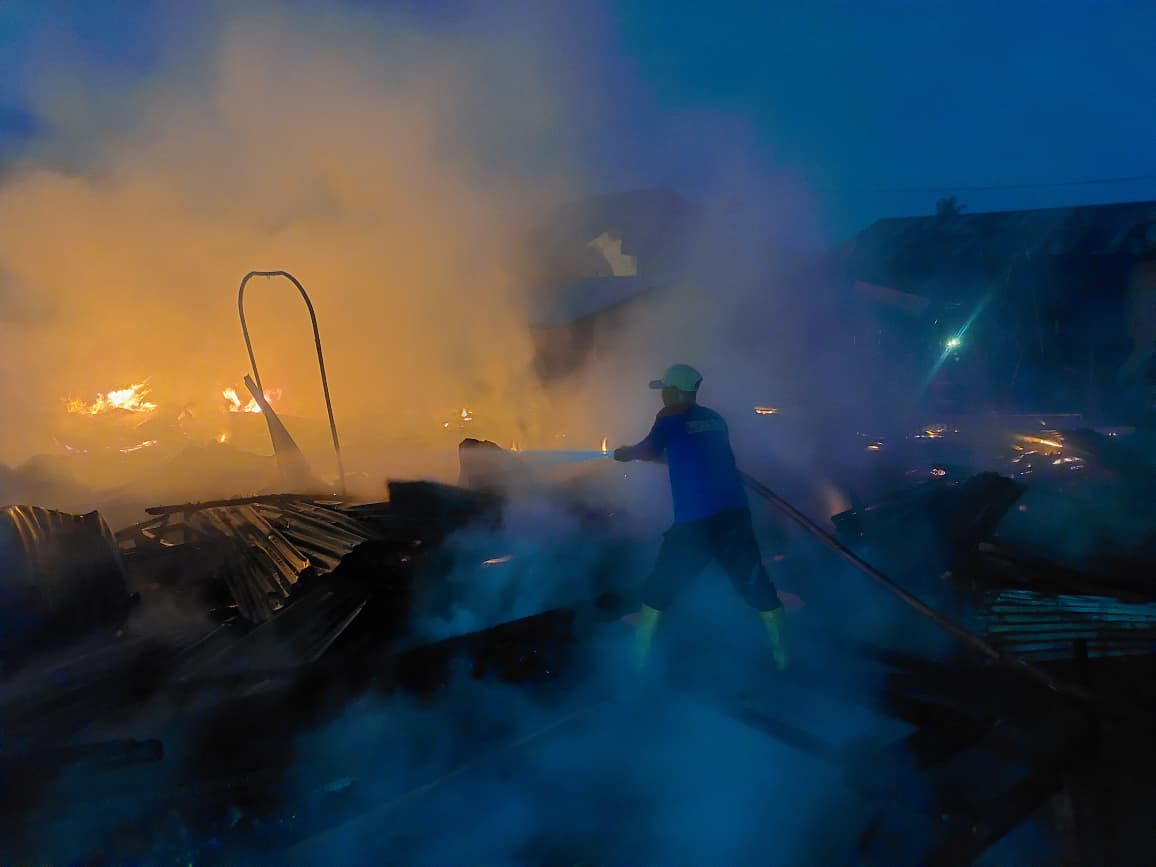 Selain rumah, dua sepeda motor ikut terbakar. Kerugian materiil masih dalam pendataan pihak berwenang.