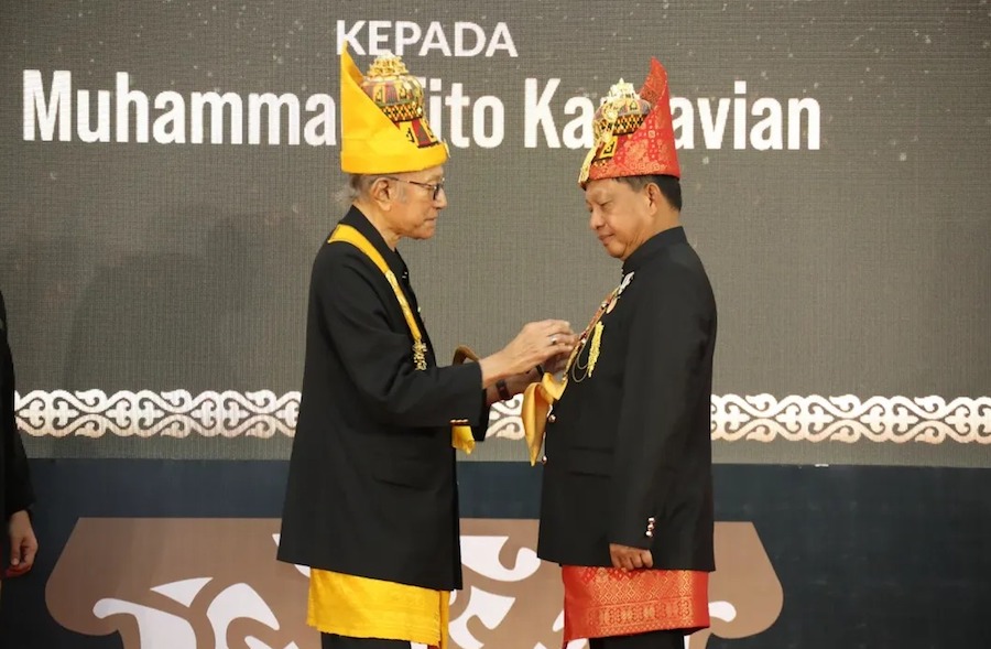 Lingkanews.com | Banda Aceh — Menteri Dalam Negeri (Mendagri) Muhammad Tito Karnavian menerima medali kehormatan dan gelar Petua Panglima Hukom Nanggroe dari Wali Nanggroe Aceh, Paduka Yang Mulia Teungku Malik Mahmud Al-Haythar. Penganugerahan berlangsung khidmat di Pendopo Wali Nanggroe, Darul Imarah, Aceh Besar, Rabu, 12 November 2025.
