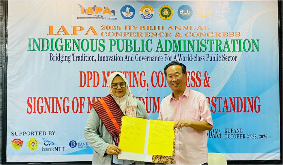 Penandatanganan tersebut berlangsung di Kupang, Nusa Tenggara Timur, Selasa (28/10/2025), bertepatan dengan penyelenggaraan Kongres dan International Conference IAPA (Indonesian Association for Public Administration). Kegiatan itu menjadi momentum penting bagi penguatan kolaborasi akademik antara Indonesia dan Korea Selatan dalam bidang administrasi publik digital.