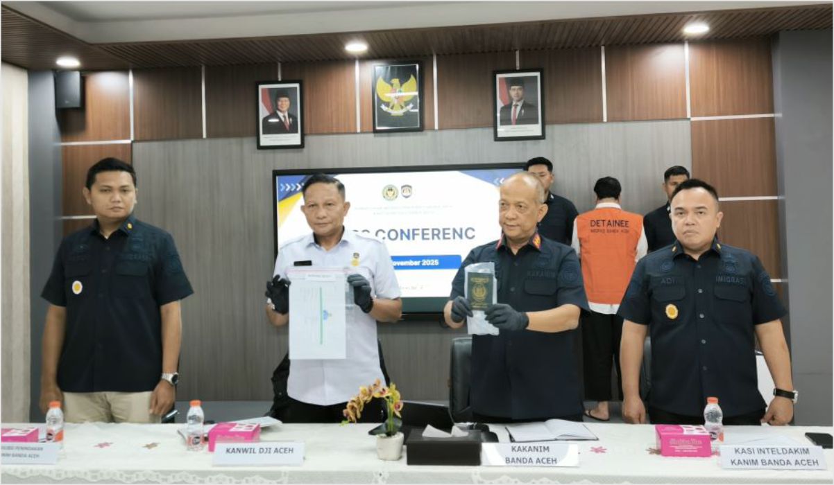 Petugas Imigrasi menyita paspor serta izin tinggal milik MB sebagai barang bukti. Berdasarkan data, MB tiba di Indonesia melalui Bandara Soekarno-Hatta pada 26 Agustus 2025. Ia kemudian terdeteksi berada di Banda Aceh sebulan kemudian.